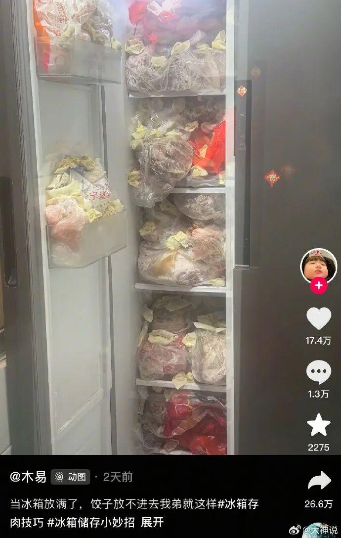想吃饺子就去冰箱里摘一点