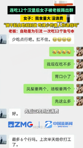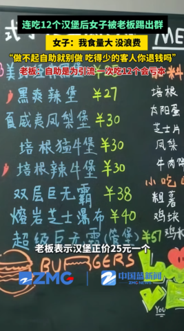会做生意的老板肯定会抓住商机的,这多好的广告啊,好吃到一次能吃12个的汉堡。